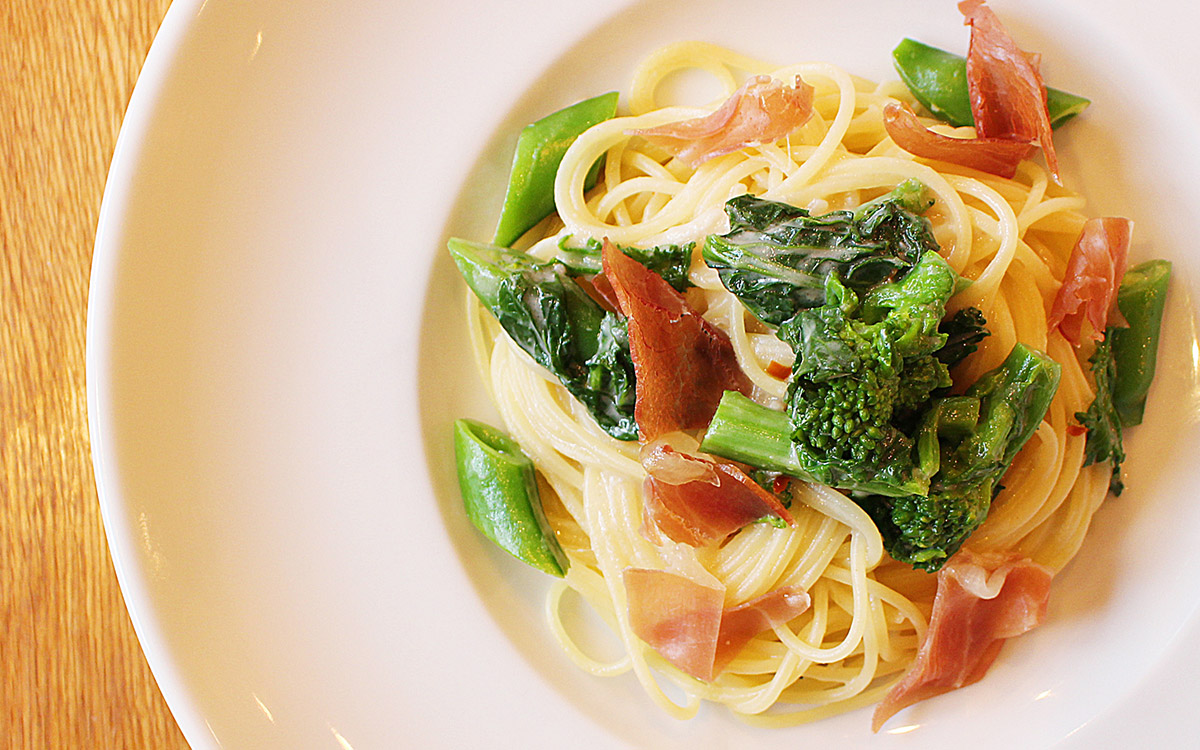 - 【期間限定】ハモンセラーノと春野菜のバーニャカウダパスタ