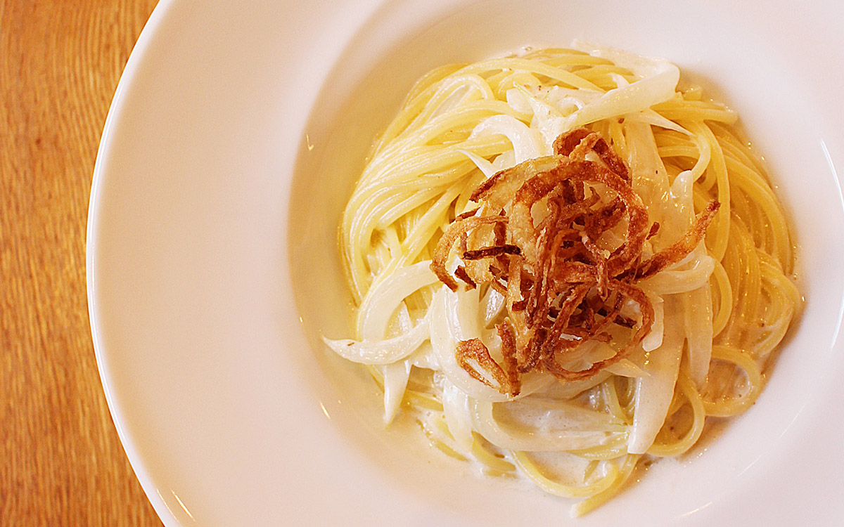- 【期間限定】新玉ねぎとペコリーノチーズのクリームパスタ
